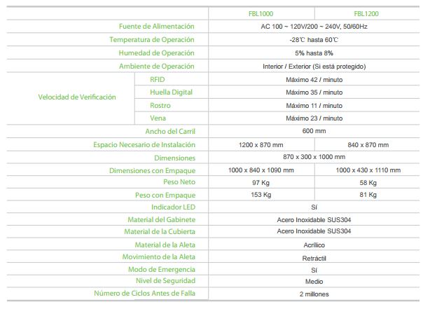 La FB1000 es una barrera de aleta para un solo canal de acceso. Precisa de un dispositivo maestro y uno esclavo para formar una entrada. La FB1200 es una barrera con doble aleta (una por cada lado) para ser combinada con la FB1000 para formar múltiples entradas.