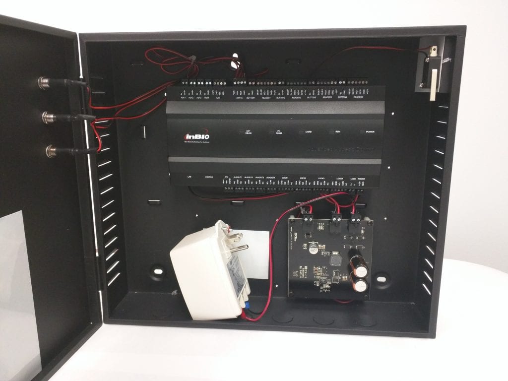 Un paquete de INBIO-460 en gabinete de metal con fuente de alimentación