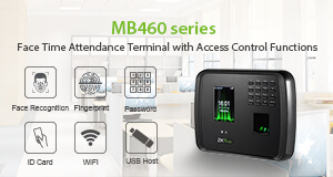 El MB460 es un innovador dispositivo para la gestión de tiempo y asistencia de los empleados, soporta métodos de verificación por medio de rostro, huella digital, contraseña y combinaciones entre los anteriores además de funciones básicas de Control de Acceso.